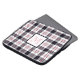 Cette pochette d'ordinateur portable personnalisée dispose d'un motif écossais moderne (plaid) avec des rayures en blanc, rose rougeâtre et noir et d'un monogramme encadré de couleurs assorties.