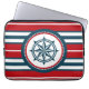 Design nautique avec décoration de boussole en forme ronde sur arrière - plan rayé rouge, bleu et blanc