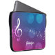 Housse Pour Ordinateur Portable Notes de musique bleu rose et monogramme personnal