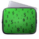 Cette pochette d'ordinateur portable présente un tas de signes dollars ($) dans différents styles répartis sur un arrière - plan vert. Un excellent moyen de montrer votre amour de l'argent, ou de faire un point sur le coût de votre ordinateur portable!