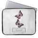 Protégez votre ordinateur portable avec un tamis à papillons rose brillant personnalisé. Le design de la pochette de l'ordinateur portable présente des papillons brillants reposant sur une vigne blanche florale contre un arrière - plan gris. Autres articles disponibles avec cette conception aussi. Contactez-moi directement pour obtenir de l'aide sur la personnalisation.