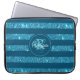 Un design simple, élégant, élégant, bleu océan et bleu turquoise parties scintillant rayé vous pouvez customiser avec votre monogramme et votre nom. Ajoutez un peu de parties scintillant et de bling à votre mode de vie quotidien pour protéger votre ordinateur portable avec cette pochette chic.