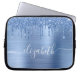 Manches personnalisées chic et girly pour ordinateur portable avec fausse parties scintillant bleue qui coule vers le bas d'un arrière - plan de feuille immétallique bleu. Monogramme avec votre nom dans un script blanc design et tendance avec des swashes.