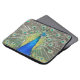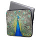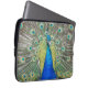 Manche d'ordinateur portable à fermeture éclair et protectrice, avec l'image photo d'un magnifique Peacock bleu avec plumage coloré. Image imprimée sur un côté. Sélectionnez la taille de la manche de votre ordinateur portable. REMARQUE : L'image est imprimée sur un côté seulement de la manche.