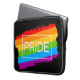 Cette oeuvre présente un arc-en-ciel coloré avec le mot Pride.