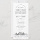 Un programme de mariage décoré sur le thème de la skyline pour un mariage se déroulant dans la belle ville de Houston, Texas. Cette carte de programme de mariage présente une illustration stylisée de l'horizon unique de la ville avec son nom en dessous. Il se repose sous vos informations de jour de mariage dans un style ouvert assorti. À l'envers, il y a une couleur gris nickel douce avec plus de détails mariages en texte blanc pour compléter l'avant. Une façon élégante d'accueillir les gens de l'extérieur dans votre ville, tout en leur donnant des informations utiles sur votre série d'événements de cérémonie mariages.