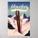 Hovden, Bykle dans le comté d'Agder, Norvège à Ski belle affiche de voyage de ski de style vintage.