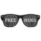 Lunettes de soleil de la fête : teintes rétro classique avec le texte "HUGS GRATUITS" - mode amusante, fête universitaire, Père Noël secrète, célébrations de bureau / sortie de nuit