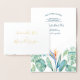 Chic feuille d'or et aquarelle faire-part de mariage tropicale a une bordure inférieure de fleurs avec feuillage botanique luxuriant et verdure. Personnalisez avec vos noms dans une feuille d'or en lettrage et détails mariages dans des lettres sans serif modernes. Parfait pour les mariages de jardin, d'été, de destination ou de plage. Pour voir d'autres designs comme celui-ci, visitez www.zazzle.com/vginvites