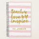 Ce planificateur enseignant personnalisé "Teach Love Inspire" combine des rayures rose vif avec de mignonnes typographies de feuille d'or et des coeurs. Grand comme un cadeau élégant pour l'appréciation de l'enseignant, Retour à l'école, vacances ou comme un cadeau Merci. ©TeacherTribeMerch