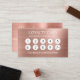 Blush Pink - Rose Gold Foil Microblading Eye Brows Metallic Minimalist Loyalty Stamp Card avec typographie en lettres blanches pour le monogramme au dos de la carte avec détails d'affaires. Le Carte de visite de fidélité ou récompenses Gold Foil Rose peut être customisé pour n'importe quelle profession et contient 10 punches modifiables et gratuit sur le devant de la carte Punch Loyauté. Veuillez contacter le concepteur si vous avez besoin de produits customisés correspondants.