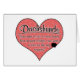 Cette conception est une célébration des nombreux cadeaux que nos teckels aimés peuvent introduire dans nos vies, bien que nous puissions apprécier certains de ces cadeaux davantage que d'autres ! Sur un grand coeur couvert de pawprints de chiot (et une petite tache dans le coin !), les mots lisent "les empreintes de pattes de congé de teckels sur votre coeur, cheveux sur vos vêtements, et ce qui est ce sur la couverture, quoi qu'il en soit ?" C'est pour ceux de nous qui aiment nos chiens et savent que parfois il est le meilleur juste de rire au sujet des désordres occasionnels !