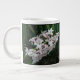 Cette énorme tasse présente une belle photo de gros plan d'un groupe de belles fleurs blanches de Hyacinth. Chaque fleur est blanche à l'intérieur et teintée d'une jolie couleur rose pâle à l'extérieur.