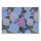Hortensia. Un motif sans couture d'hortensia luxuriant violet-clair, rose et bleu et de feuille gris vert sur un arrière - plan bleu.