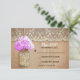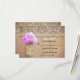 Arrière - plan en bois ancien rustique, dentelle vintage en ivoire et pot de mason mignon avec fleur d'hydrangée violette accroché sur la petite corde - mariage parfait cartes RSVP pour thème de mariage campagnard avec jarres de maçon.
