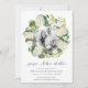 Notre Hydrangea blanche enregistrer la carte de date cadre votre photo fiançailles préférée avec une couronne ronde de fleurs d'hydrangée aquarelle peinte en blanc, accentuée de verdure luxuriante et de lettrage chic. Un choix moderne et élégant pour les mariages de printemps ou d'été. Personnalisez avec vos noms, date mariage, emplacement et site Web mariage en utilisant les champs fournis.