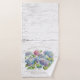 L'art floral de ces serviettes est orné d'hydrangées fleuries dans de délicieuses teintes allant du rose au bleu en passant par la lavande, avec un arrière - plan de texture de panneau de bois. La serviette de bain a deux prénoms et un nom de famille que vous pouvez personnaliser. Serviette à main et linge ont un monogramme initial à personnaliser.