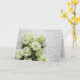 hydrangées blanches avec une carte de voeux en écr