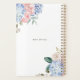 Élégante et féminine planneuse avec bouquet floral aquarelle d'hydrangées bleues et roses roses roses rousses aux accents verts. Ce planificateur floral sera parfait comme cadeau personnalisé. Personnalisez en ajoutant des noms et d'autres détails.