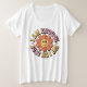 This white t-shirt features a cheerful, retro-inspired graphic. At the center is a smiling daisy flower with a happy face. The flower is surrounded by a text bubble that reads "I AM ENOUGH JUST AS I AM" in a groovy, 70s-style font. The design uses a warm color palette of pink, orange, yellow, and black. This is a perfect shirt for anyone who loves positive affirmations, vintage aesthetics, and a message of self-love and confidence.
