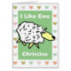 Sheep valentines card. Funny sheep cartoon card says "I Like Ewe" - a pun. Personalise with your choice of name and inside message. Say I like you to someone and add their name. I like you card with an illustration of a sheep and the name of the recipient.