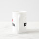 jolie porcelaine, bonne dimension effet brillant bien dans l'ensemble. Le motif et les couleurs sont réussis.Je trouve néanmoins dommage de ne pas occuper tout l'espace avc le motif car la partie rouge au dos de la tasse est trop présente et pas intéressante visuellement.