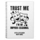 Fun IMPROV Journal avec TEXTE PERSONNALISABLE. Idéal pour les amateurs de théâtre improvisé ou de stand-ups comiques. Le design comporte des masques de théâtre et une typographie audacieuse qui dit FAITES-MOI CONFIANCE I'M AN IMPROV-ESSIONAL. Il y a du TEXTE PERSONNALISABLE en bas, que vous pouvez PERSONNALISER avec votre nom ou autre texte. Offres assorties disponibles.