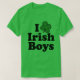 Shamrock mignon avec j'aime les garçons irlandais, où le coeur serait qu'il est remplacé par un shamrock vert trèfle à quatre feuilles. Idéal pour la fille ou la femme qui aime célébrer la Saint Patrick en portant une chemise verte flirtante et folle.