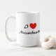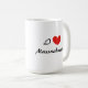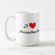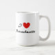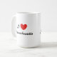 Tasse personnalisée avec design de texte minimaliste tendance avec un coeur rouge et "I Love Massachusetts" dans la typographie de script de brosse! Faites-en un cadeau sympathique pour vous-même ou pour quiconque aime le Massachusetts. Disponible en plusieurs styles et couleurs. Choisissez une tasse à café 11oz ou 15oz.