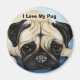 Il s'agit d'un aimant rond de 2-1/4" avec une reproduction de ma peinture d'aquarelle originale d'un carlin.