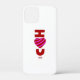 Vous pouvez admirer mon dessin de Saint Valentin et le dessin romantique que j'appelle, "I Love You", d'un coeur rayé rouge et rose, ajouté à cet Apple iPhone 12 Mini coque.