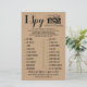 J'espionne avec mon activité mariage de caméra jeu version anglaise et espagnole inclus (avant et arrière). Changez le hashtag en modèle pour les versions anglaise et espagnole. Pour plus de personnalisation (changement de libellé, couleur de police, style de police ), cliquez sur personnaliser, faites défiler vers le bas et cliquez sur le lien "cliquer pour customiser plus loin". COMMENT JOUER : L'invité remplira la carte après la formulation fournie et partagera ses conseils pour le heureux couple
