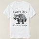 I Work Out - T-shirt Raccoon Unisex Basic T-Shirt Confortable, décontracté et souple, notre t-shirt poids lourd deviendra facilement un placard de base. Fabriqué à 100% coton, il est unisexe et porte bien sur n'importe qui et tout le monde. Double couture des ourlets des manches et inférieur pour une durabilité accrue. Lave-linge froid, séché à sec faible Importé