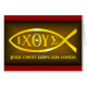 Le symbole chrétien antique des poissons. Les premiers chrétiens Grec-parlants ont employé l'image d'un poisson, et les lettres qui composent le mot pour représenter Jésus. Les caractères grecs représentent : Jésus-Christ, le fils de Dieu, sauveur.