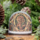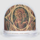 Globe neigeux représentant l'icône chrétienne orthodoxe de la Théotokos et de l'Enfant Christ du Buisson ardent.