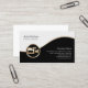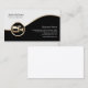 Ce carte de visite d'opérateur de caméra comporte des segments noirs et blancs séparés par une bande d'or ondulée. Une élégante icône en or d'une caméra se trouve en bas à gauche de la conception, ce qui est généralement adapté aux entreprises ou professions liées à la photographie, la caméra, le visuel, le divertissement, l'imagerie numérique, les thèmes artistiques créatifs.