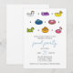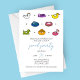 Cette invitation à la fête au bord de la piscine avec icône de ligne de radeau de piscine présente un design amusant et ludique qui est parfait pour une célébration estivale. L'illustration de huit flotteurs de piscine colorés, y compris un beignet, un dragon et une licorne, ajoute une touche fantaisiste à l'invitation. La calligraphie moderne et la typographie facile à lire facilitent la transmission des détails importants de la fête, tels que la date, l'heure et le lieu.