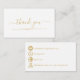 Emballage de commande élevé avec cette carte de remerciement raffinée avec un arrière - plan blanc propre et des icônes en or gras pour e-mail, téléphone, web et adresse. Le gracieux script "merci" sur le devant ajoute une touche chaleureuse, tandis que le dos présente soigneusement les coordonnées, les poignées sociales et l'espace pour un code de réduction ou la prochaine incitation à l'achat. Parfait pour les petites entreprises et les magasins Etsy pour encourager les critiques, les commandes répétées et les suiveurs sociaux. Le jeu d'icônes et le texte peuvent être mis à jour pour correspondre aux besoins de la marque, il suffit de demander si différentes icônes sociales sont nécessaires.