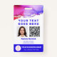 Modifiez facilement ce modèle pour télécharger votre propre photo d'identité, vaccin, code à barres ou code QR et vos informations personnelles. Idéal pour tout travailleur de soins, entreprise de soins à domicile ou travailleur indépendant. Plus les informations de 'gentiment retourner' sur le dos. Art abstrait unique avec des teintes d'aquarelle rose, violet et or. ID photo travail QR Code Pink Purple Badge.