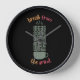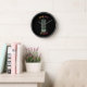 Une horloge présentant une tasse de café avec une chaleur levant qui dit, "Les idées viennent après le café," avec la phrase "Pause loin de la routine" centrée autour de l'image. Le design suggère une échappatoire humoristique et identifiable aux stress quotidiens, soulignant l'importance du café pour l'inspiration.