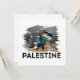 Le design "Palestine" combine une image réelle qui express la lutte palestinienne avec un puissant impact visuel dans un style déchiré qui reflète résilience et défiance. Le design est un message visuel qui incarne la force.