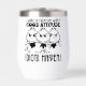 A humorous and sarcastic black-and-white graphic design showcases three bird silhouettes perched on a branch, each with big, expressive eyes. The black handwritten text reads, "I wake up every day with a good attitude and then idiots happen." This design is available on a variety of products, making it a perfect gift for bird lovers and fans of sarcastic humor.