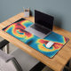 Composition abstraite symétrique de deux formes en forme de larme en miroir. Comprend un noyau intense de rouge et d'orange, se délaissant en jaune vif contre un arrière - plan bleu profond, suggérant un moment capturé de libération ou de transformation énergétique.