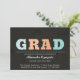 Un arrière - plan de bouleau foncé et des lettres d'ikat funky en turquiose et orange font pour une invitation de graduation unique.