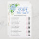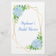 Ce jeu de douche nuptiale est un He Said, She Said devine qui l'a dit jeu. Il présente des fleurs d'hydrangée bleu aquarelle, du feuillage et un design géométrique en faux or. Personnalisez le dos de la carte avec le nom de la mariée. Produits correspondants disponibles.