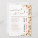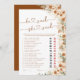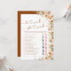 Faites rire vos invités avec cette carte de jeu de douche nuptiale He Said She Said. Doté de fleurs de terre cuite boho rustique avec des roses d'aquarelle brillants et audacieux et d'élégants lys calla, ce jeu de devinettes amusant est la façon parfaite de divertir les amis et la famille. Les invités encerclent si la mariée ou le marié est le plus susceptible d'avoir dit chaque phrase, ce qui en fait une activité interactive et ludique. Conçue pour s'adapter aux thèmes bohème, rustique ou terre cuite de la douche nuptiale, cette carte mêle l'art floral romantique à l'animation joyeuse.