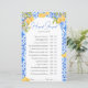 He Said, She Said : Italian Love Edition Préparez-vous à tester votre connaissance de la mariée et du marié avec une tournure amusante sur le jeu classique—He Said, She Said—Style italien! Ce jeu de charme comporte des citations ludiques de la mariée et du marié, et vos invités devront deviner qui l'a dit. Avec un beau design inspiré de la côte italienne vibrante, avec des citrons ensoleillés et des tuiles bleues et blanches, ce jeu est parfait pour des thèmes comme "She Found Her Main Squeeze" et "That’s Amore". Le design italien animé apporte une touche de romantisme et de plaisir à la douche, et les citrons colorés ajoutent un charme ludique, tandis que les carreaux bleus et blancs classiques transportent chacun dans une escapade méditerranéenne de rêve. Caractéristiques : Jeu interactif et amusant qui fera rire tout le monde comme ils devinent qui a dit quoi. Belle décoration à thème italien avec citrons et carrelage bleu et blanc pour égayer votre thème mariage. Idéal pour les douches nuptiales avec les vibes "She Found Her Main Squeeze" ou "That’s Amore". Facile à jouer avec des invités de tous âges, pas de préparation nécessaire, juste du plaisir pur! Laissez le rire couler alors que vous fêtez l'amour, la romance, et un peu de charme italien avec ce jeu de douche nuptiale excitant. C’est la meilleure façon d’ajouter une touche personnelle et d’attirer vos invités dans un moment amusant !