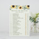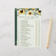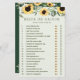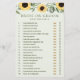 Un design élégant et chic de jeu de douche de nuptiale parfait pour les futurs mariés à la campagne. Notre design comprend nos tournesols jaunes dorés peints à la main, des fleurs crème blanches et des espaces verts naturels aménagés pour créer cet élégant aménagement de style champêtre. "Devinez de mariée ou de chambre qui l'a dit" est affiché en haut avec. Jaunes dorés, crèmes et couleurs vert forêt créent un élégant style rustique de style champêtre. jaune Aquarelle florale tournesol et verdure encadrent le dessus. L'envers comprend notre motif de tournesol jaune aquarelle complémentaire. Toutes les fleurs sont dessinées à la main par Moodthology.