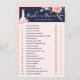 Une douche à nuptiale à rose de jardin élégant, élégant et tendance, il dit qu'elle dit jeu de douche à nuptiale. Le design présente notre robe mariage chic, élégante et moderne peinte à la main, blanche et rose pâle, peinte à la main, avec un jardin botanique de roses et de fleurs fleuris. La robe florale est accrochée à un cintre de style vintage imitation or orné. Les détails en dentelle de fleurs douces et les emblèmes scintillants de la robe mariage créent un look magnifique, sophistiqué et luxueux. Une belle écriture de style manuscrit typographie "Mariée ou Groom" en blanc. La palette bleu marine, rose roux et faux or crée un look tendance, chic et vintage. Des roses à fleurs aquarelles encadrent le dessus. L'envers est un arrière - plan rose pâle et minimaliste avec un motif coeur doré qui complète magnifiquement l'illustration avant. OEuvre originale de Moodthology dessinée à la main.