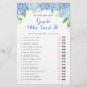 Ce jeu de douche nuptiale est un He Said, She Said devine qui l'a dit jeu. Il présente un design floral hydrangea bleu aquarelle. Vous pouvez personnaliser le texte avec vos propres questions. Fournitures de douche de mariée assorties disponibles.